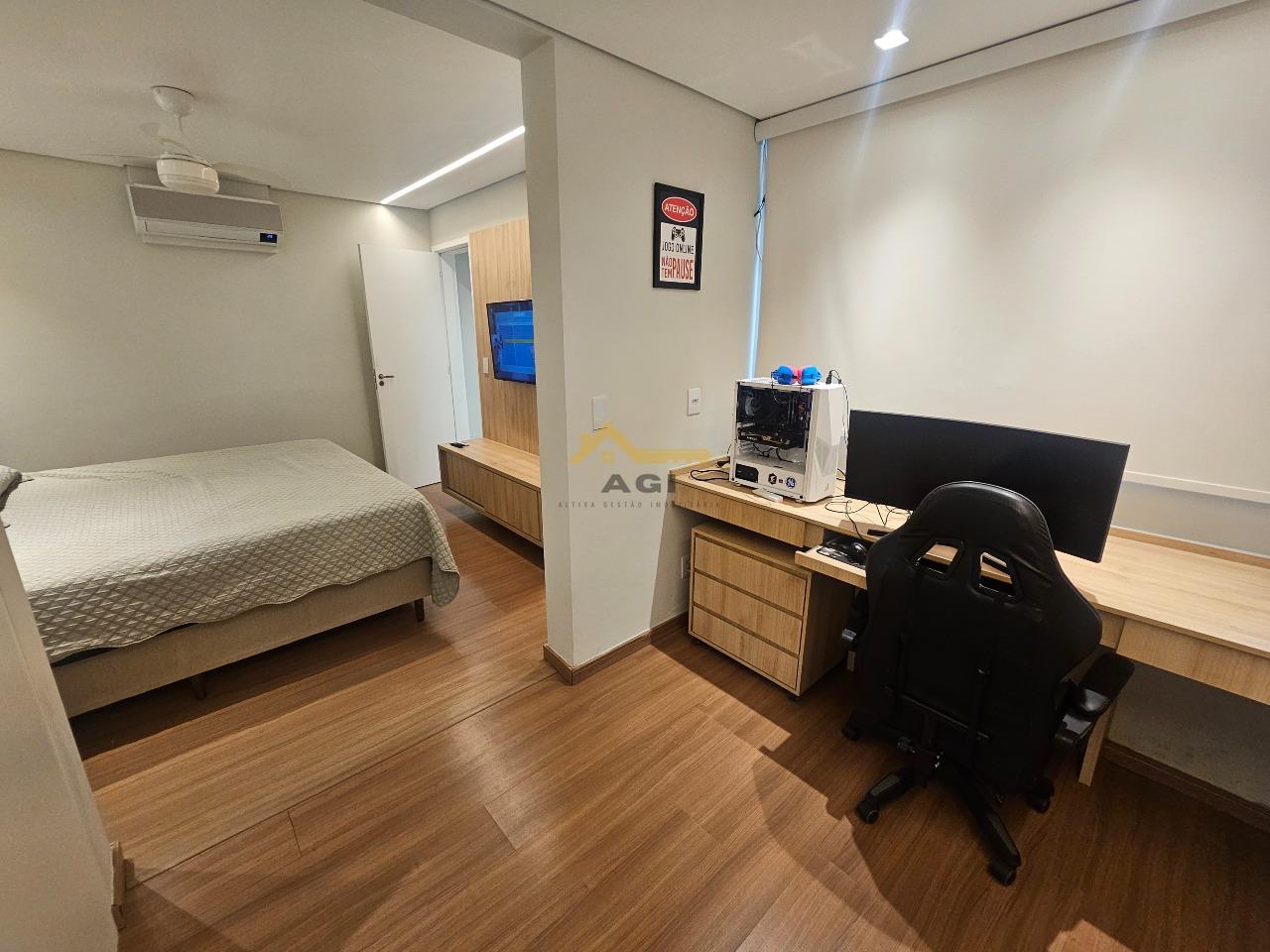 Vende-se lindo apartamento no regime de PORTEIRA FECHADA, com 02 vagas de garagem, 02 áreas privativas, sauna e churrasqueira elétrica embutida. Prédio e apartamento novos, com móveis planejados, suíte master com closet e ar condicionado, quarto de visita e espaço gourmet.