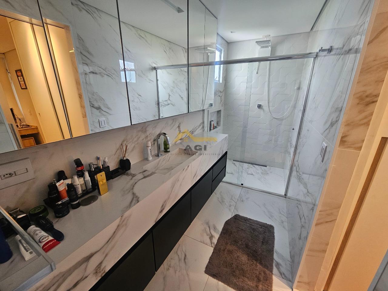 - 03 banheiros, sendo social e suite com bancada em granito, piso em porcelanato, armários e box blindex e 01 lavabo externo para o espaço gourmet.