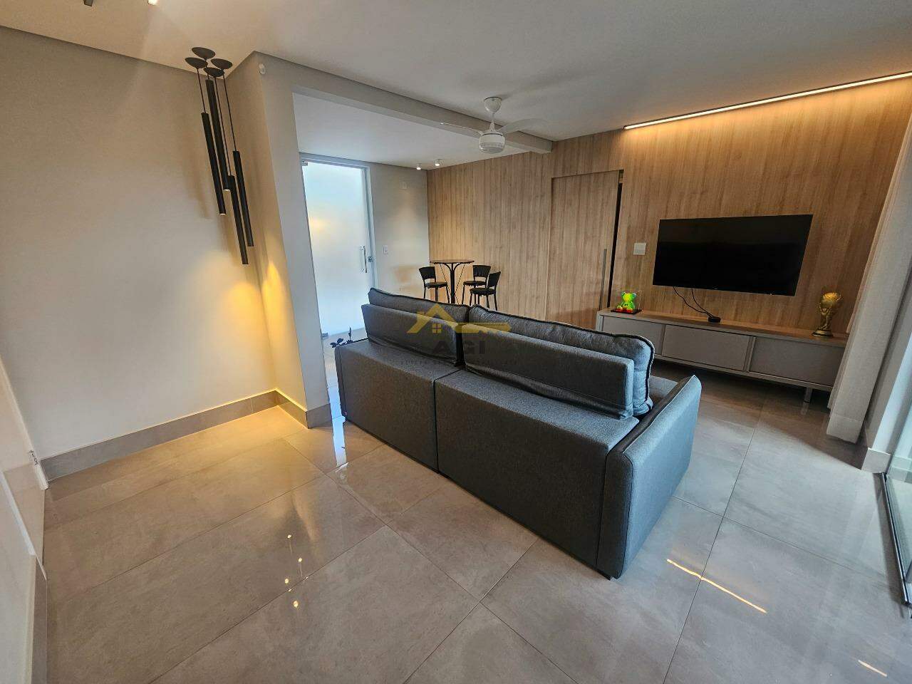 - 01 Sala para dois ambientes com piso em porcelanato